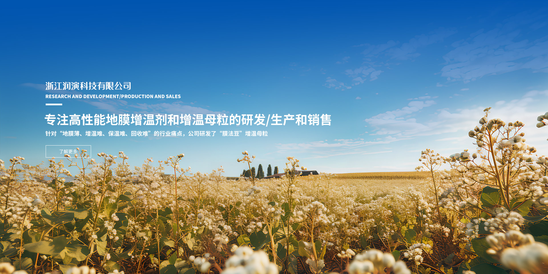 浙江润演科技有限公司秉承“科技助农、实业扶农、环保护农”的发展理念,立足国内、放眼国际,专注高性能地膜增温剂和增温母粒的研发、生产和销售。 针对“地膜薄、增温难、保温难、回收难”的行业痛点,公司研发了“膜法豆”增温母粒,国家有关部门测试数据显示,添加“膜法豆”增温母粒的地膜其保温性能高于普通地膜2~5摄氏度,比水滑石具有更好的保温效果。且韧性显著增强,使用期更长,使用后易于回收,可有效解决地膜破损碎片污染泥土的环保问题。“膜法豆”增温母粒国内首创,国际上尚无同类产品,是地膜行业全新的应用材料,是中高端地膜生产厂商提升产品性能和市场竞争力的首选。 公司位于“四省通衢”的浙江省衢州市常山县高科产业园,交通便捷。一期建设用地30亩,厂房建筑面积11300平方米,公司实验室,具备完整的实验设备及测试仪器,自主研发制作工艺和专用生产设备、已建成多条现代化生产线,母粒年产能达2.5万吨。 “润物无声,演谋有道”,润演科技愿与您携手共赴高质量发展之路,共创我国“三农”美好未来!
